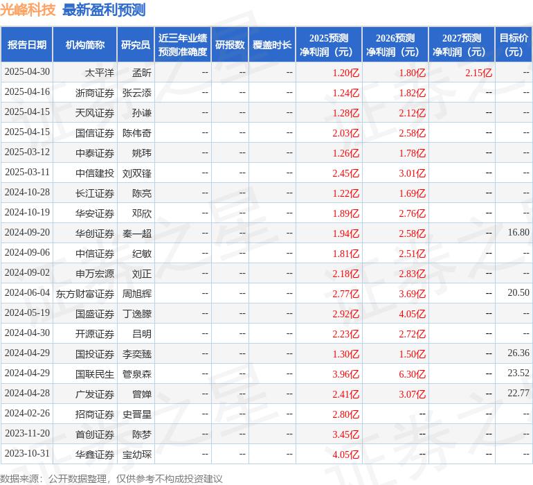 最新盈利预测明细如下: